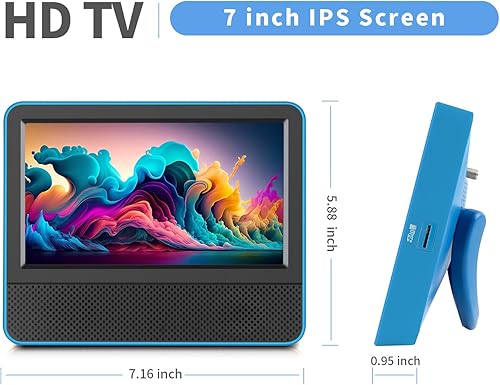 Jexiop JX-7INCH 7 iNCH Non-Smart IPS 1080p Screen Mini TV, Portable TV with Digital ATSC Tuner, USB/TF Port, HDMI Input, DC-12V TV for Camping Caravan Kitchen, in Blue, Orange, or Black [at Amazon]